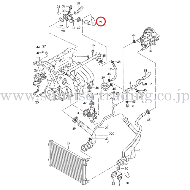 Audi A4 ウォーターホース (フランジ>クーラントパイプ) 純正